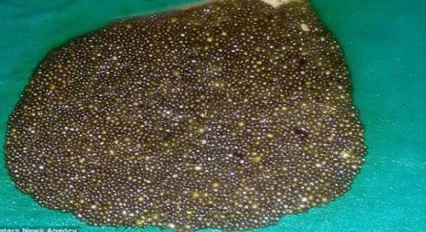 After running tests, doctors found a mysterious ball near the woman’s bladder aka gallstones. And while gallstones are extremely common, it was the amount they discovered that shocked them…11,950 to be exact.
